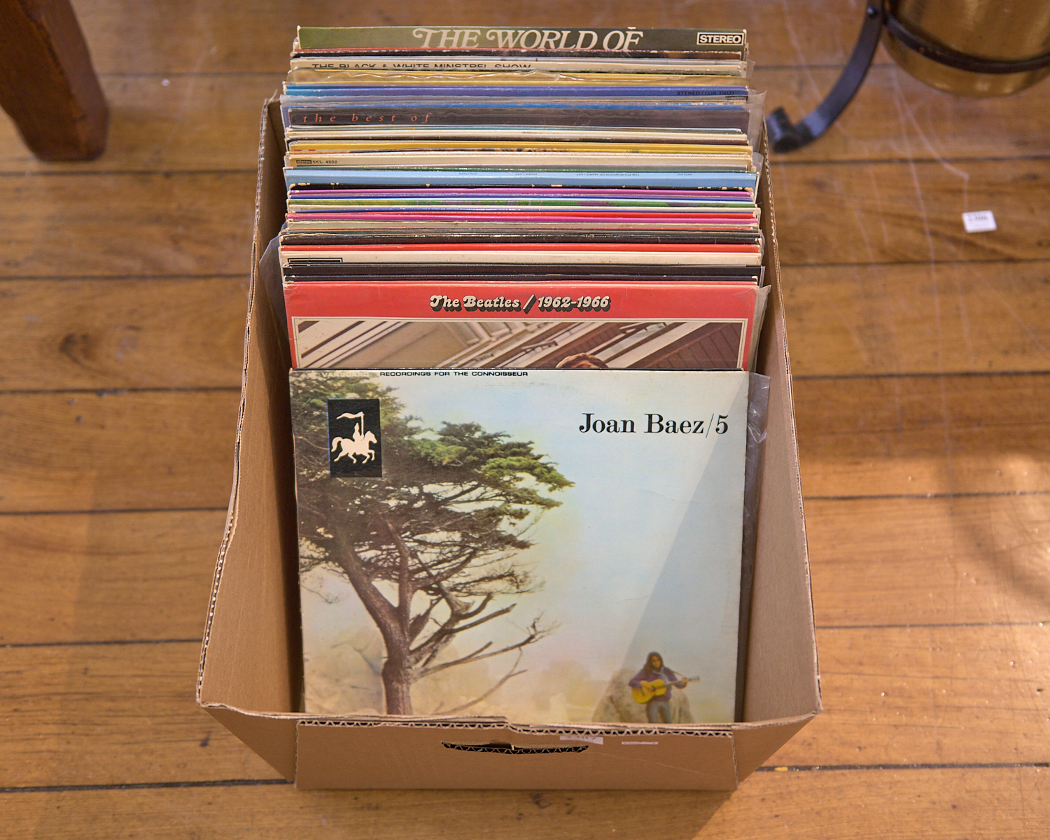 A GROUP OF ASSORTED RECORDS INCLUDING THE BEATLES, ABBA, CAT STEVENS AND OTHERS, LEONARD JOEL LOCAL DELIVERY: MEDIUM