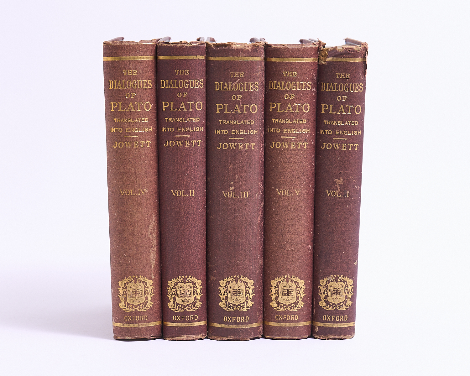 FIVE VOLUMES OF "THE DIALOGUES OF PLATO", TRANSLATED BY B. JORRETTI, LEONARD JOEL LOCAL DELIVERY: MEDIUM