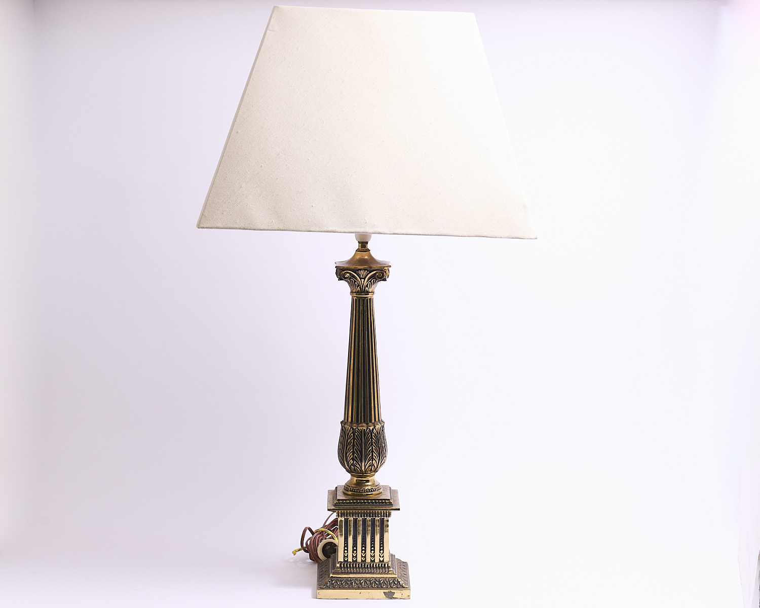 LARGE CROMWELL BRASS TABLE LAMP BASE WITH SHADE H.95CM, LEONARD JOEL LOCAL DELIVERY: MEDIUM