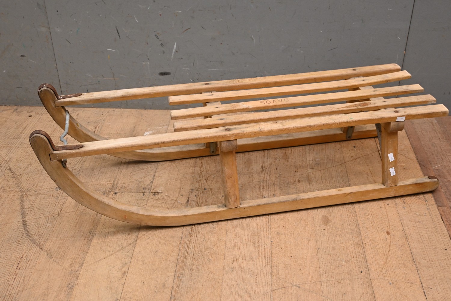 A NORTHERN EUROPEAN SNOW SLED CIRCA 1900, BY DAVOS (A/F) (25H X 100W X 29D CM) (LEONARD JOEL DELIVERY SIZE: MEDIUM)
