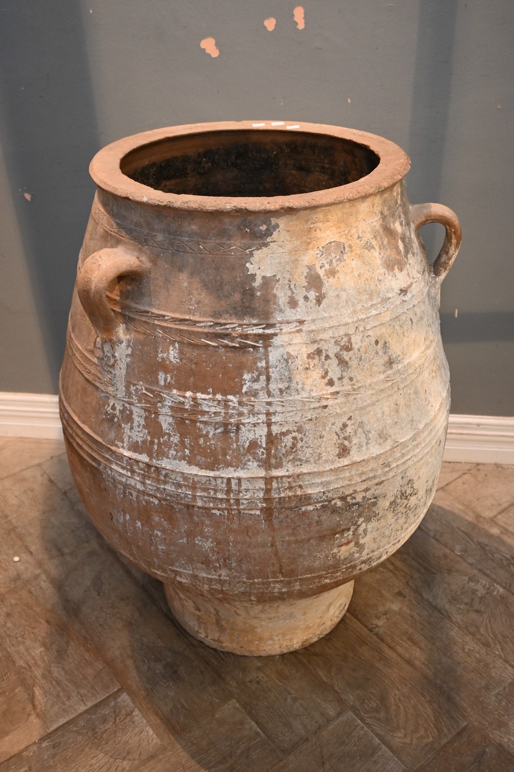 AN ANTIQUE GREEK WATER URN CIRCA 1900 (94H X 74D CM) (PLEASE NOTE THIS HEAVY ITEM MUST BE REMOVED BY CLIENTS OR CARRIERS AT THE CUSTOMERS EXPENSE. LEONARD JOEL STAFF CANNOT ASSIST CARRYING THIS ITEM)