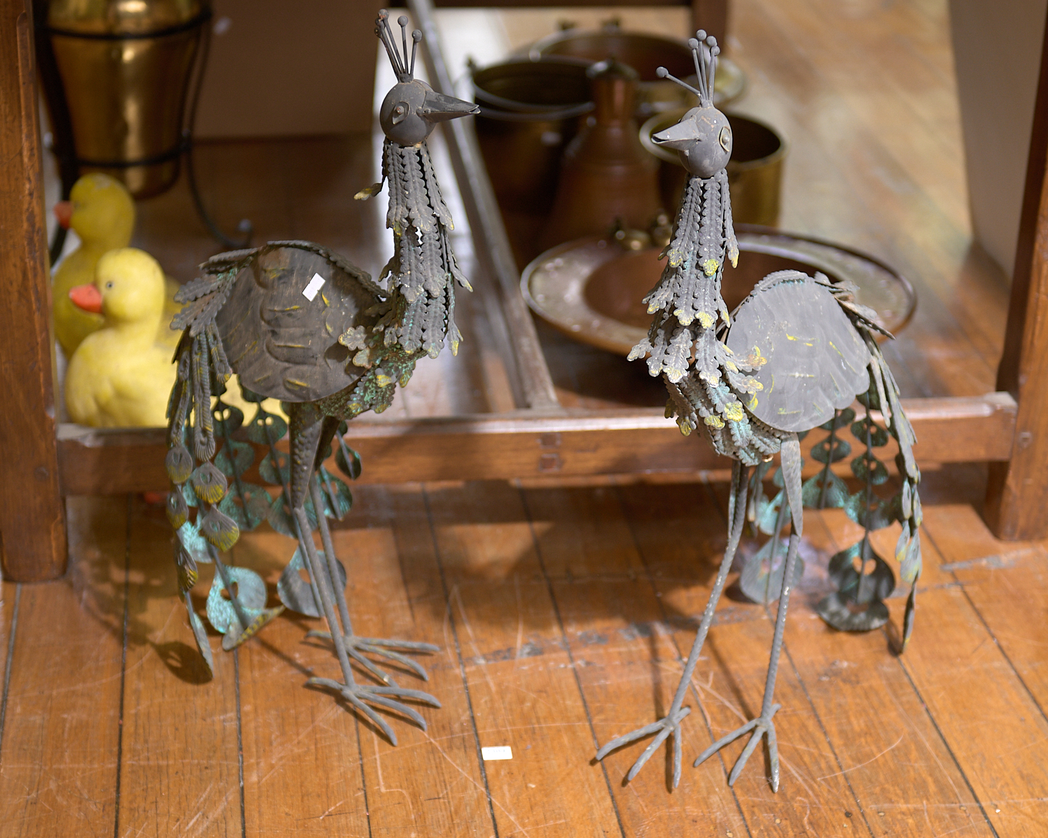 A PAIR OF METAL PEACOCKS H.70CM X W.53CM, LEONARD JOEL LOCAL DELIVERY: MEDIUM
