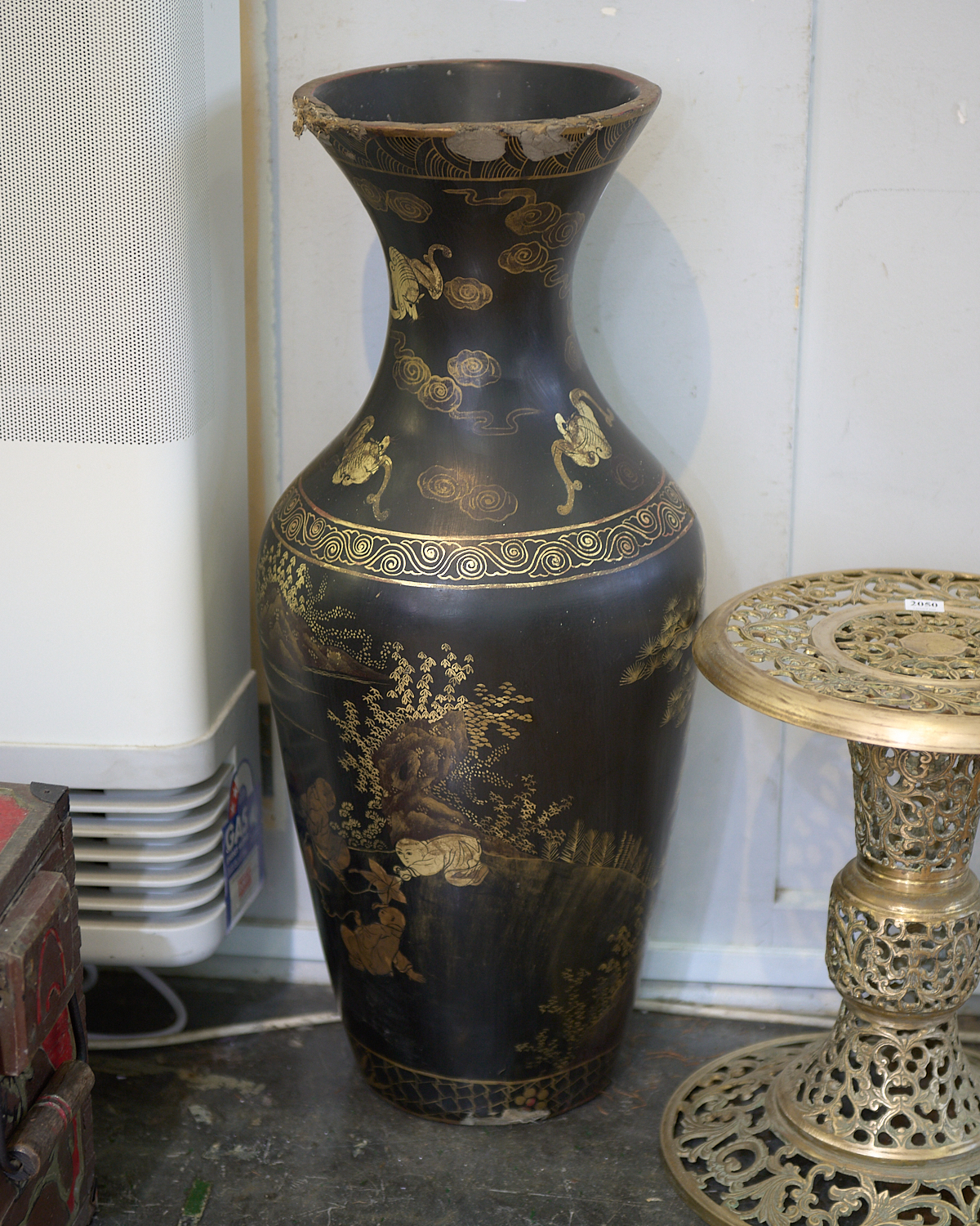 A PAPIER MACHE VASE (A/F) H.69CM, LEONARD JOEL LOCAL DELIVERY: MEDIUM
