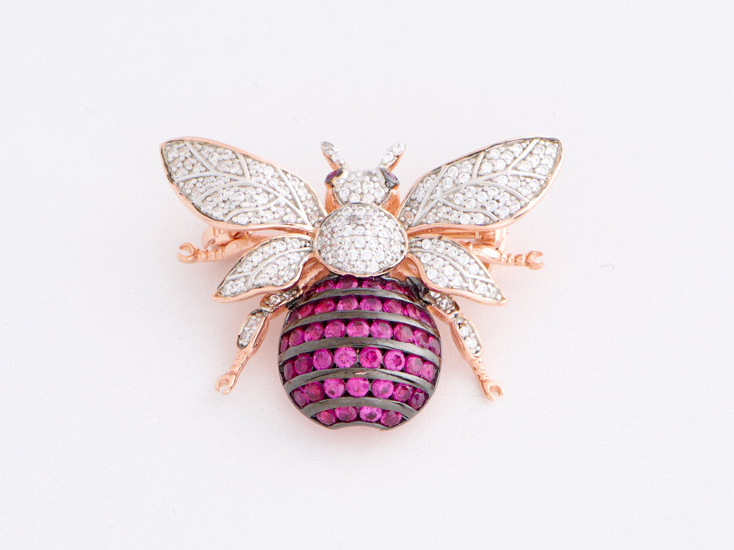 A VINTAGE PASTE SET BEE FORM BROOCH IN SILVER GILT, 35 X 30MM