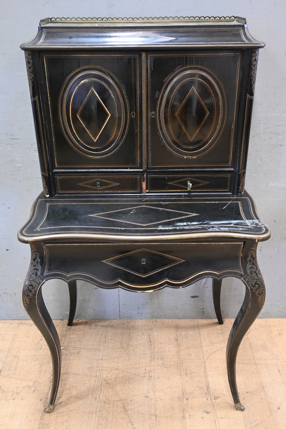 A LOUIS XV EBONISED ESCRITOIRE (A/F) (135H X 76W X 54D CM) (LEONARD JOEL DELIVERY SIZE: LARGE)