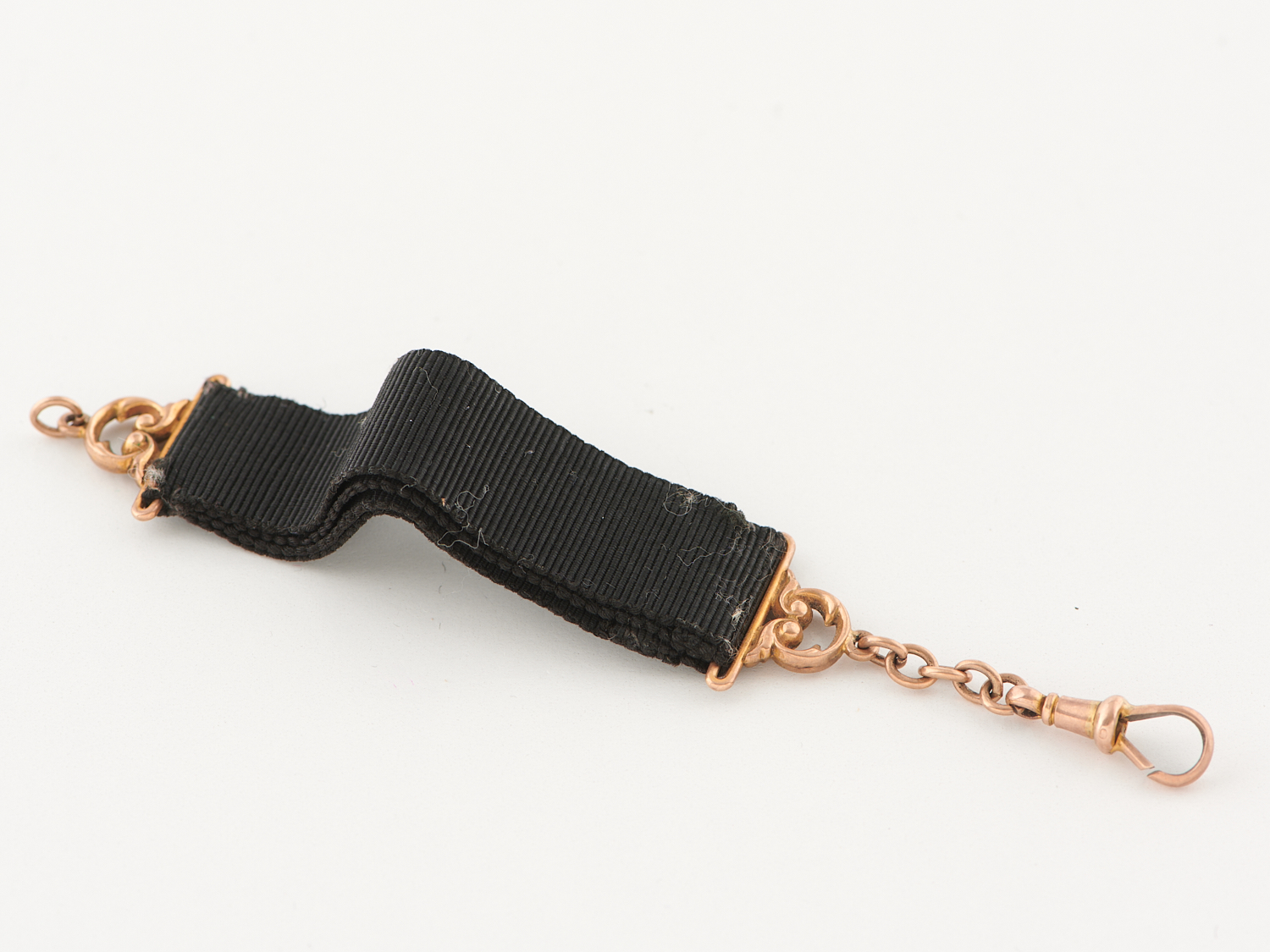 A 9CT GOLD AND GROSSGRAIN RIBBON ALBERTINA, LENGTH 120MM