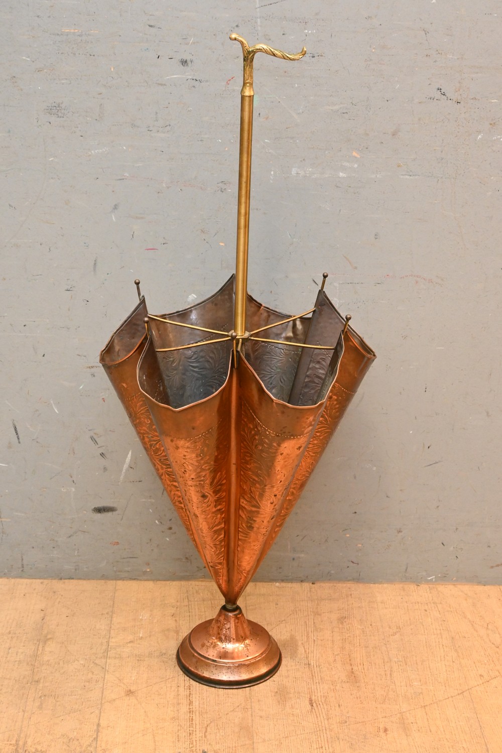 A FRENCH COPPER AND BRASS UMBRELLA FORM STAND (93H X 40D CM) (LEONARD JOEL DELIVERY SIZE: MEDIUM)