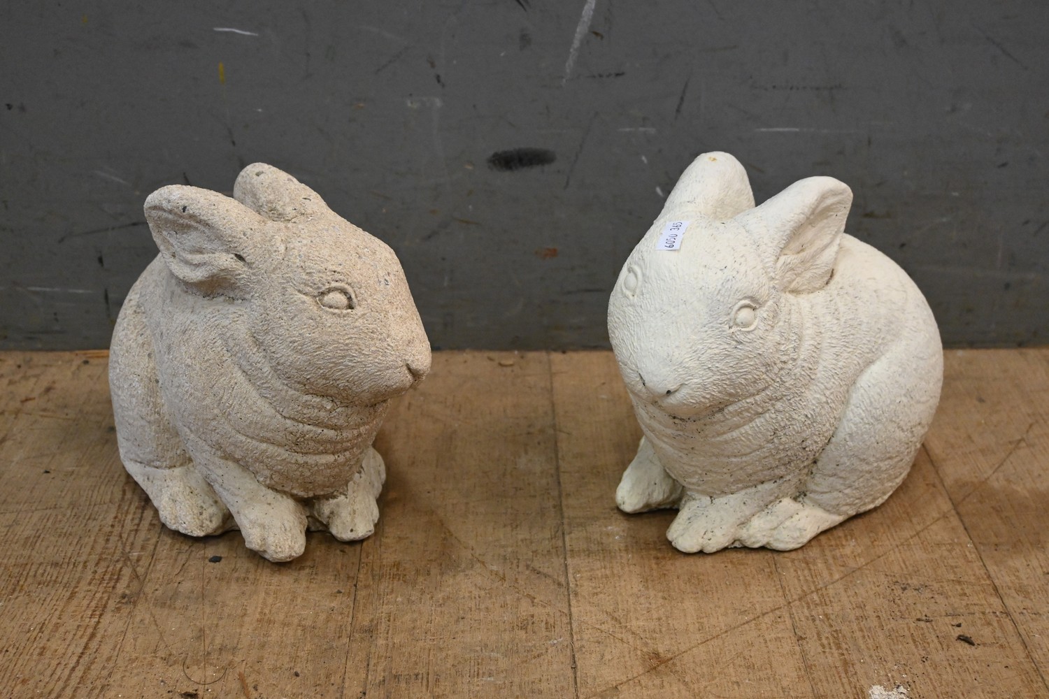 PAIR OF RECONSTITUTED STONE FRENCH RABBIT FIGURES (20H X 25W CM) (LEONARD JOEL DELIVERY SIZE: MEDIUM)
