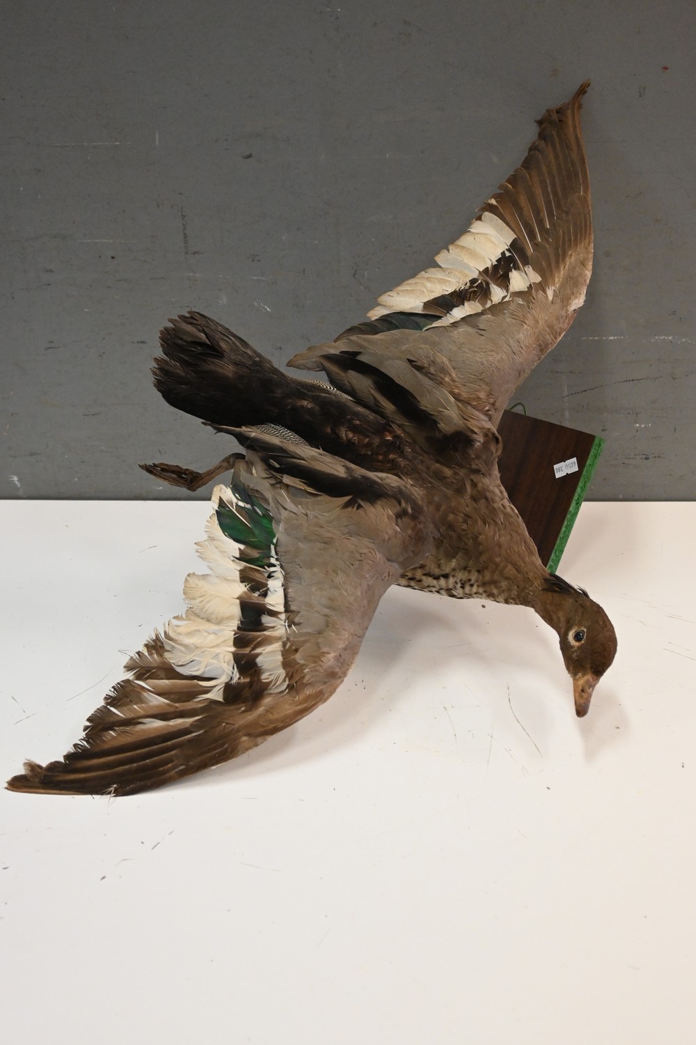 A VINTAGE TAXIDERMY WALL MOUNT MALLARD DUCK (A/F) (72H X 73W X 43D CM) (LEONARD JOEL DELIVERY SIZE: MEDIUM)