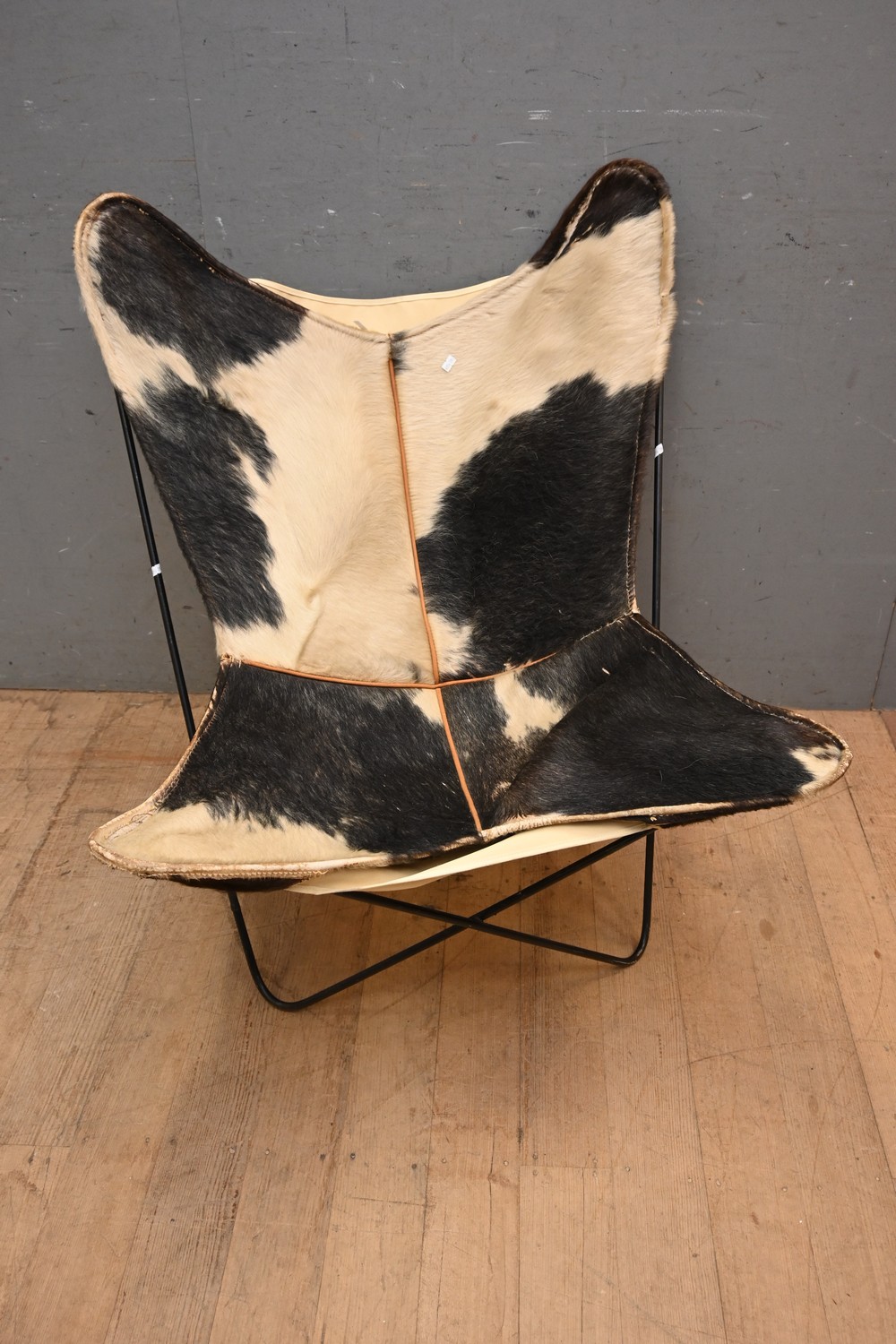 AN BLACK STEEL BUTTERFLY CHAIR WITH HIDE COVER AND REPLACEMENT NEW CANVAS COVER (92H X 80W X 85D CM) (LEONARD JOEL DELIVERY SIZE: LARGE)