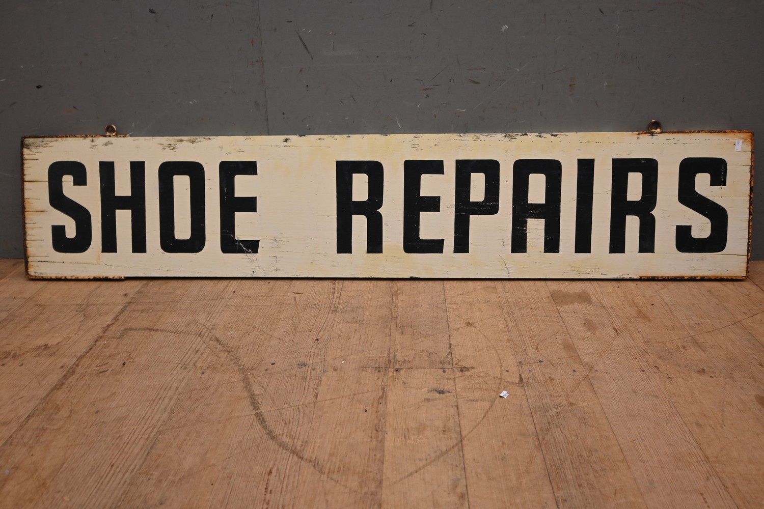 A VINTAGE SHOE REPAIRS SWINGING SIGN (31H X 154W CM) (LEONARD JOEL DELIVERY SIZE: LARGE)