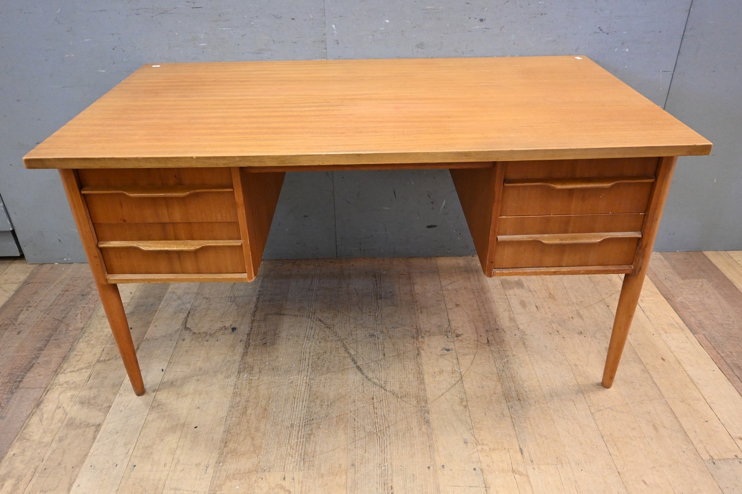 A MID CENTURY SIX DRAWER DESK (A/F) (75H X 138W X 77D CM) (LEONARD JOEL DELIVERY SIZE: X-LARGE)