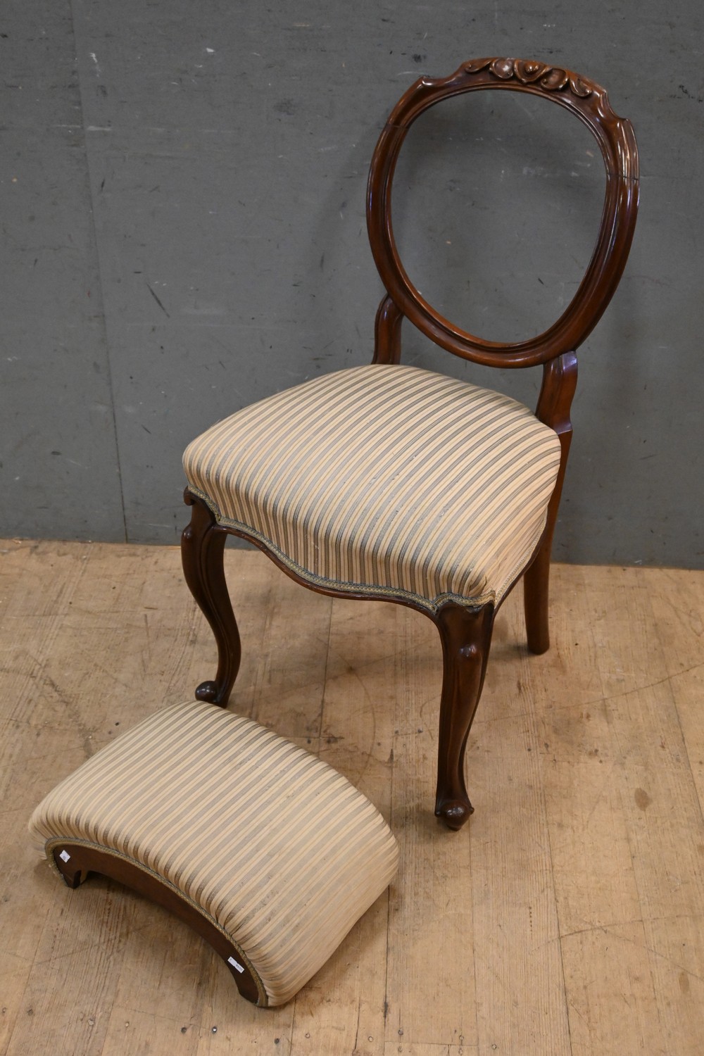 A VICTORIAN STYLE UPHOLSTERED CHAIR AND OTTOMAN (88H X 47W X 51D CM) (LEONARD JOEL DELIVERY SIZE: MEDIUM)