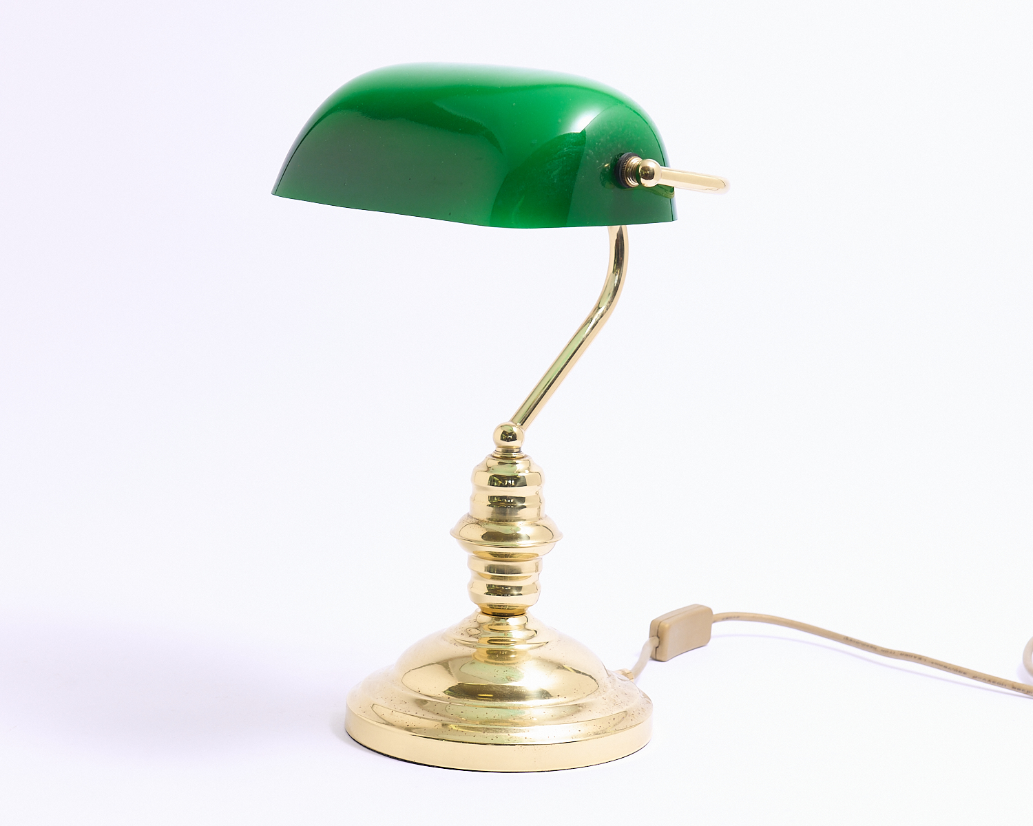 A GREEN GLASS BANKERS STYLE LAMP H.39CM, LEONARD JOEL LOCAL DELIVERY: MEDIUM