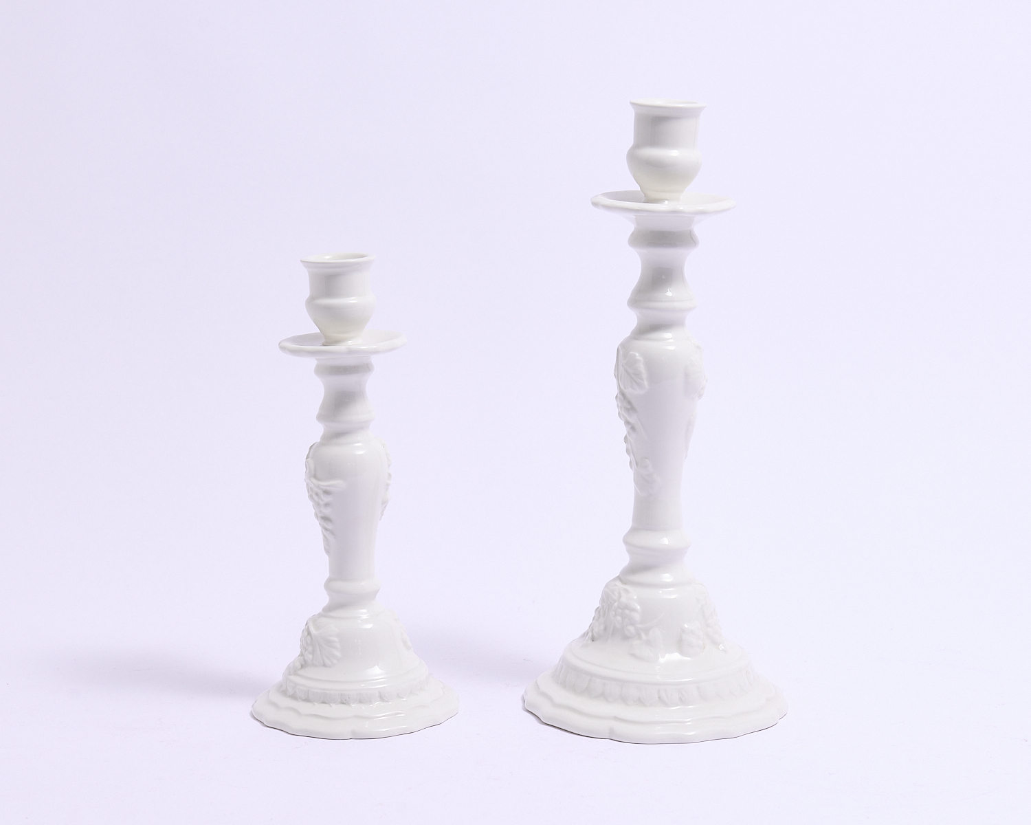 TWO ITALIAN WHITE PORCELAIN CANDLESTICKS H.31CM, LEONARD JOEL LOCAL DELIVERY: SMALL