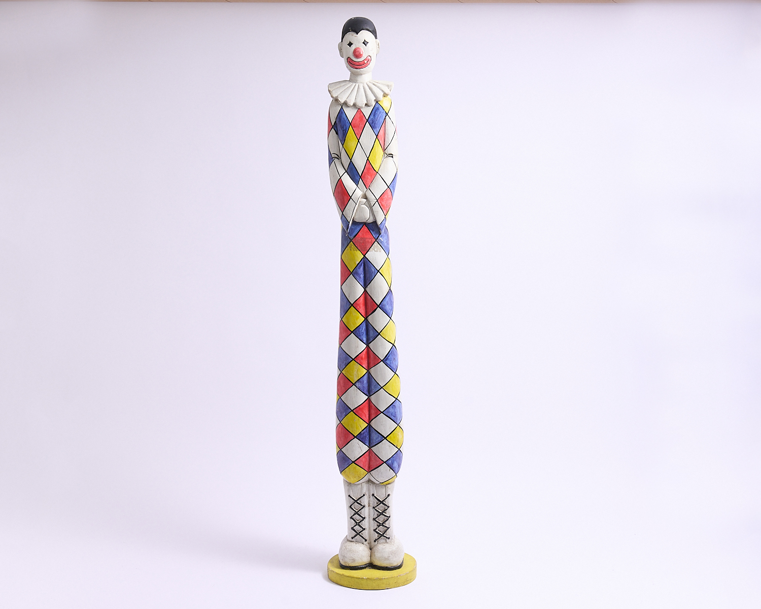 A CARVED WOOD CLOWN H.94CM, LEONARD JOEL LOCAL DELIVERY: MEDIUM