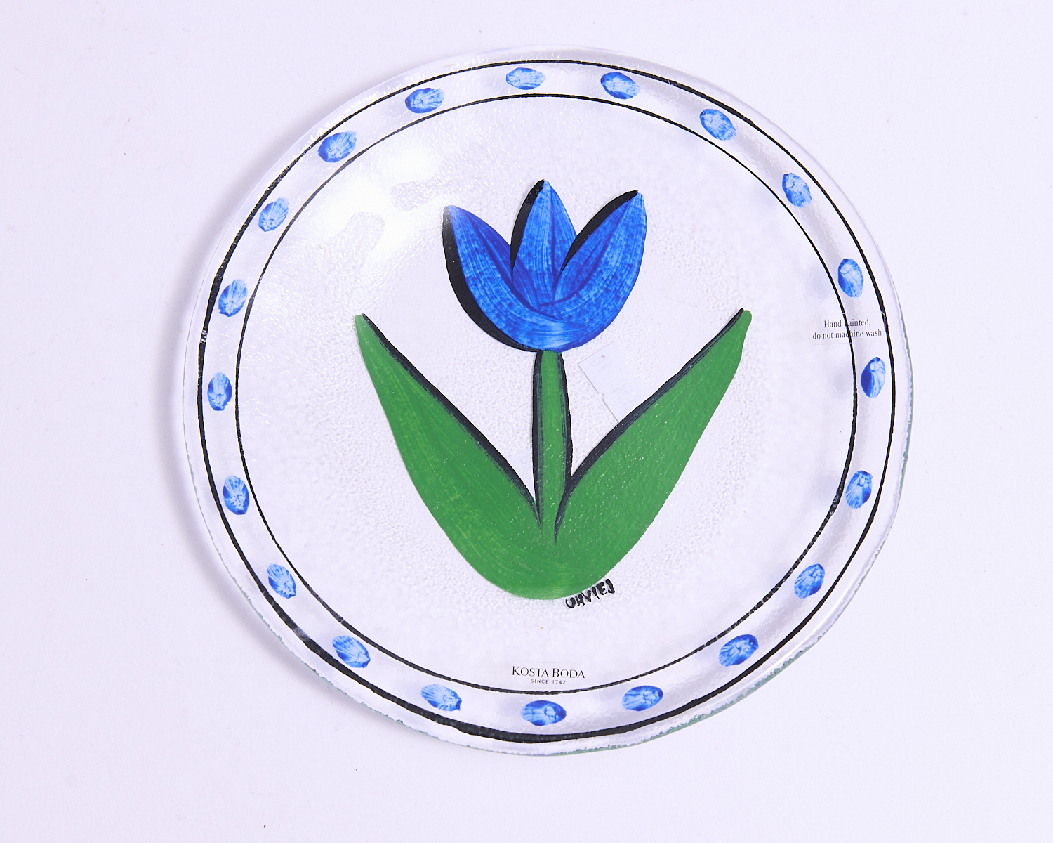 A KOSTA BODA ULRICA HYDMAN VALLIEN VASE AND PLATE H.25CM (TALLEST), LEONARD JOEL LOCAL DELIVERY: SMALL