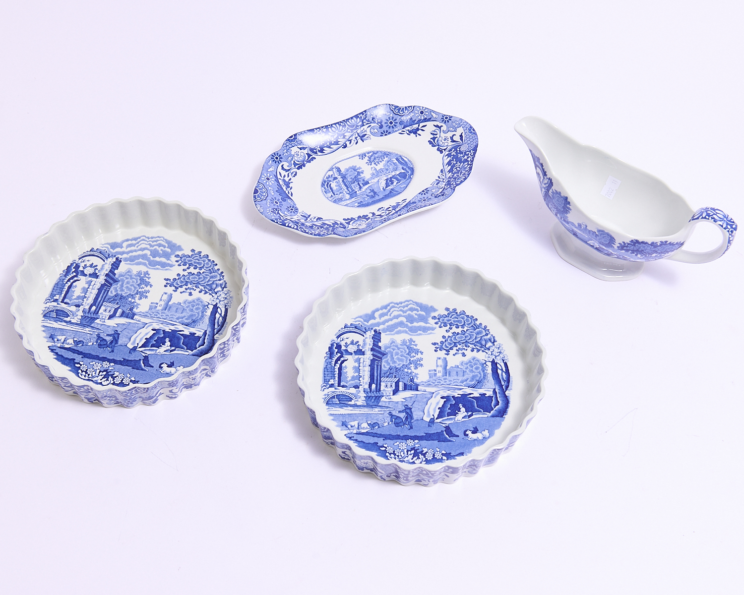 A COLLECTION OF BLUE AND WHITE SPODE ITALIAN PORCELAIN INCLUDING CRIMPED PIE DISHES, DIA.20CM, LEONARD JOEL LOCAL DELIVERY: SMALL