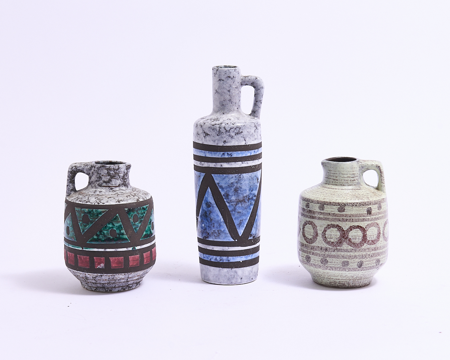 THREE GERMAN POTTERY JUGS, H.21.5CM (TALLEST), LEONARD JOEL LOCAL DELIVERY: SMALL