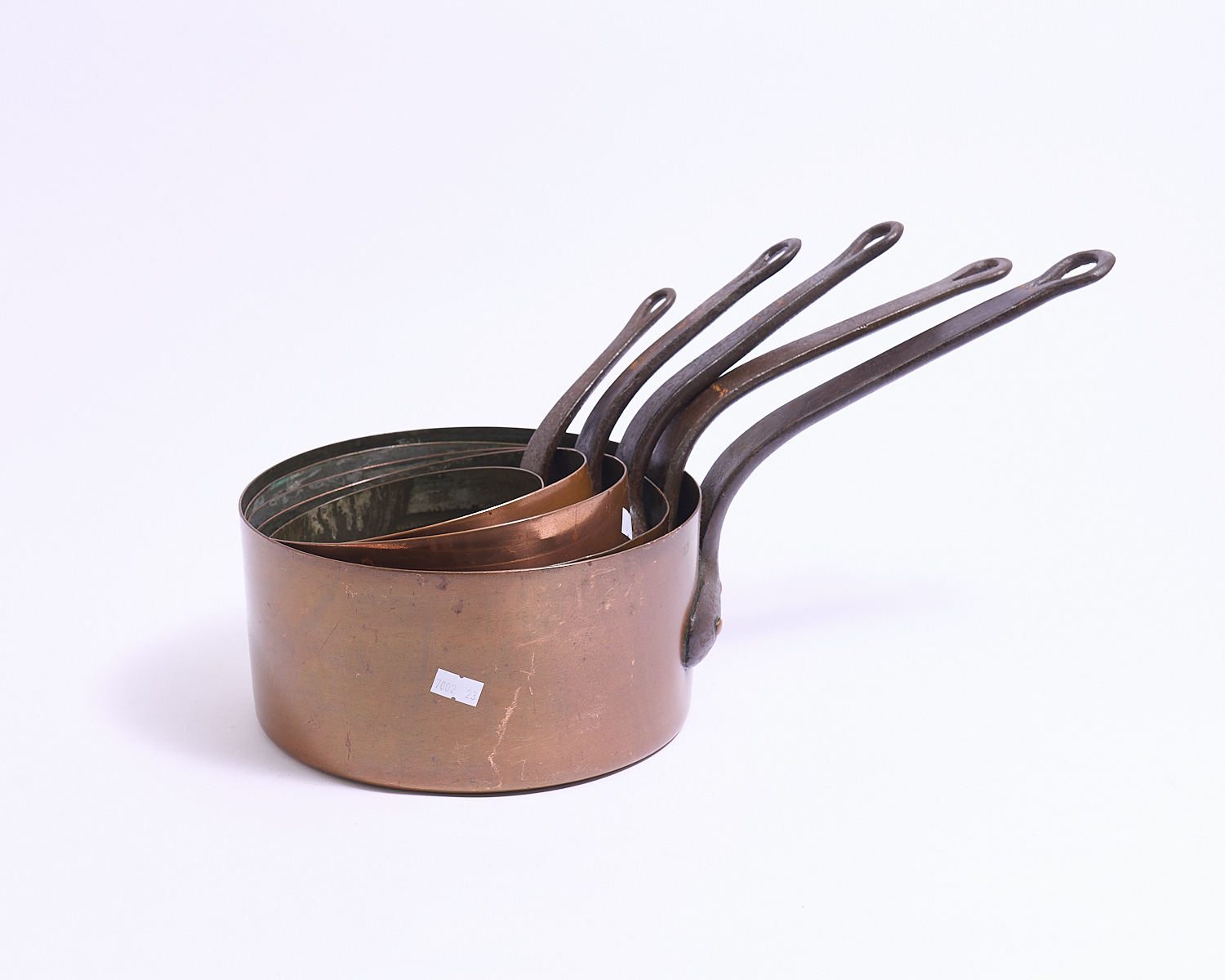 A GRADUATED SET OF COPPER SAUCEPANS, DIA.20CM (LARGEST), LEONARD JOEL LOCAL DELIVERY: MEDIUM