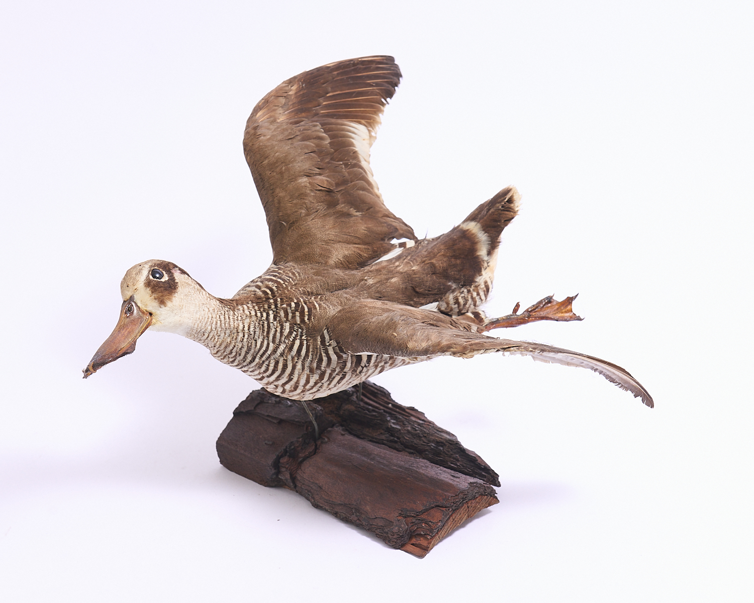 A VINTAGE TAXIDERMY DUCK ON WALL MOUNT, L.36CM, LEONARD JOEL LOCAL DELIVERY: MEDIUM