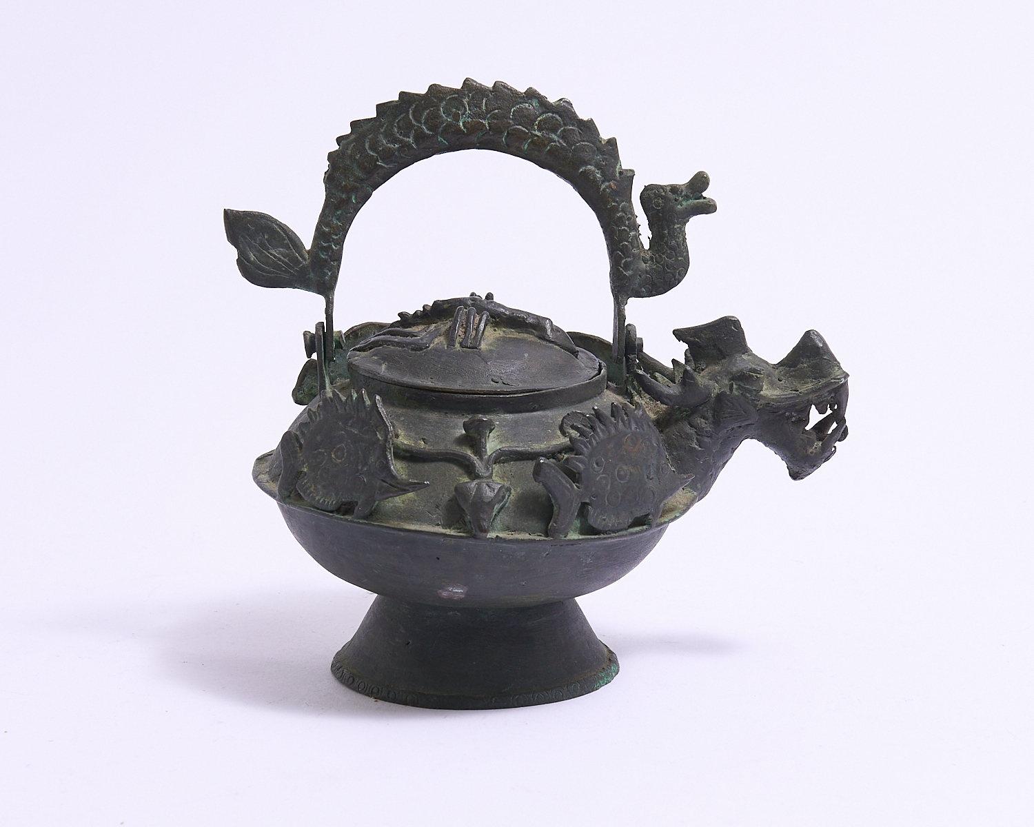 A BRONZE TEAPOT WITH DRAGON SPOUT AND ANIMAL MOTIFS, L.20CM, LEONARD JOEL LOCAL DELIVERY: SMALL