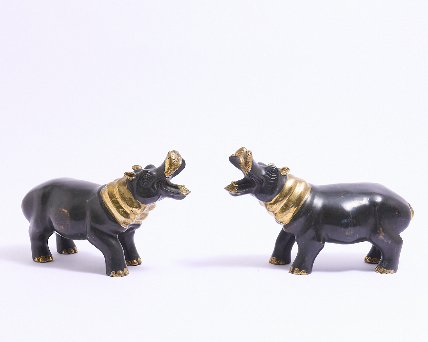 A PAIR OF BRONZE ART DECO HIPPO FIGURES, L.24CM, LEONARD JOEL LOCAL DELIVERY: SMALL