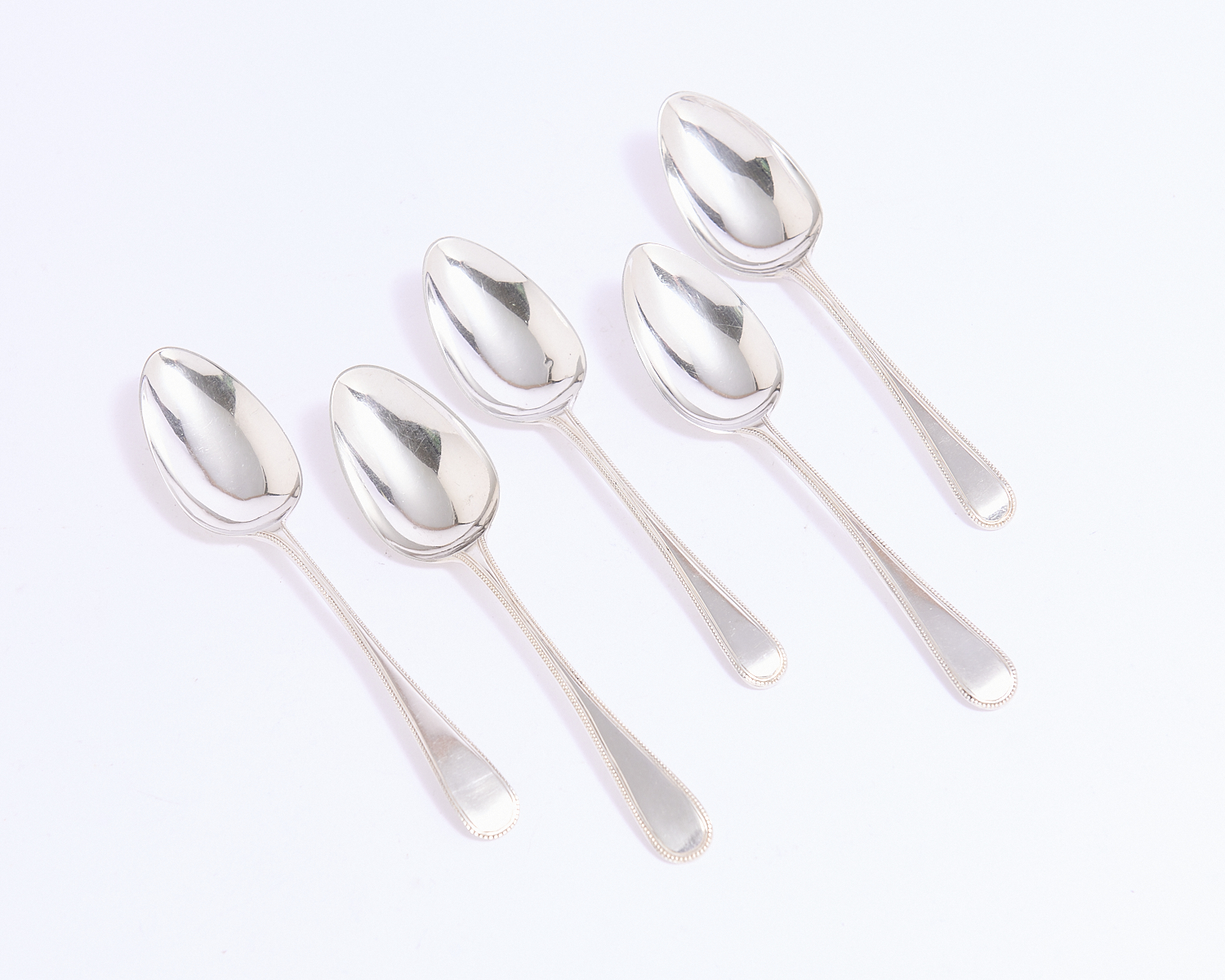 FIVE GEORGIAN STERLING SILVER BEAD EDGE SPOONS - 170 GRAMS L.17.5CM, LEONARD JOEL LOCAL DELIVERY: SMALL
