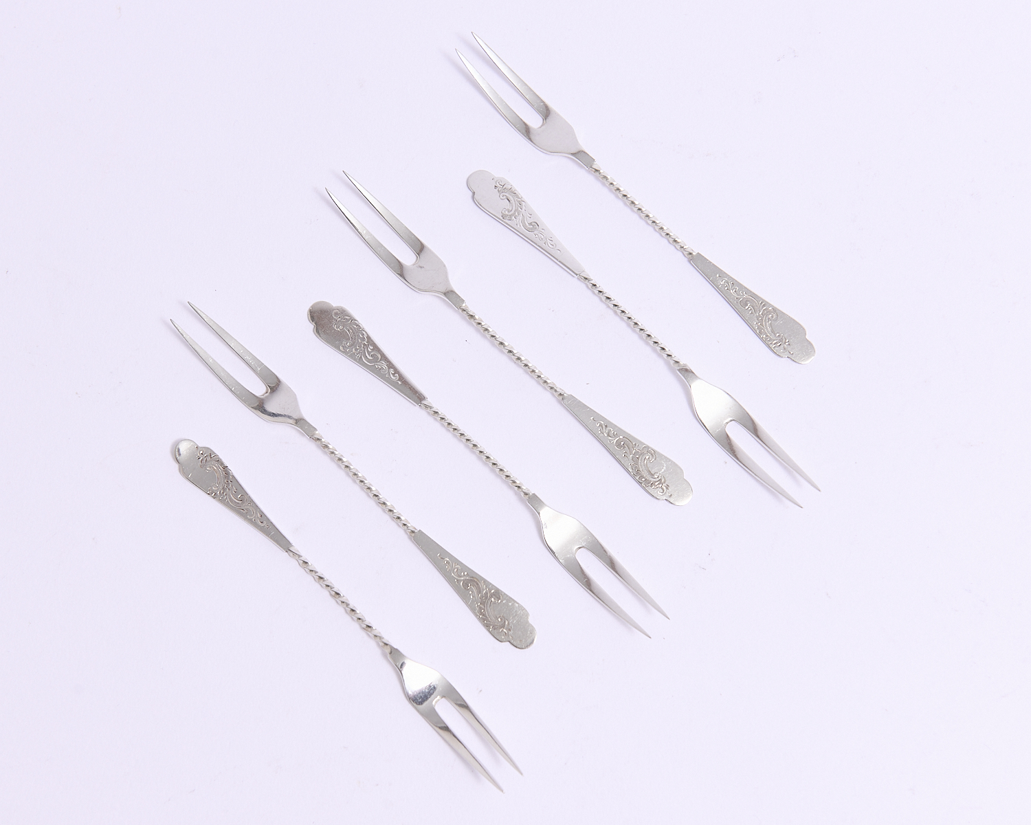 SIX STERLING SILVER ENGRAVED FORKS L.12CM, LEONARD JOEL LOCAL DELIVERY: SMALL