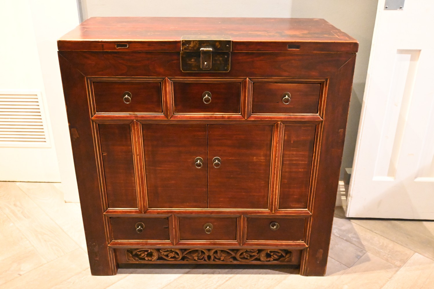 A CHINESE MULTI DRAWER HALL/CONSOLE CHEST (A/F) (96H X 95W X 47D CM) (PLEASE NOTE THIS HEAVY ITEM MUST BE REMOVED BY CLIENTS OR CARRIERS AT THE CUSTOMERS EXPENSE. LEONARD JOEL STAFF CANNOT ASSIST CARRYING THIS ITEM)