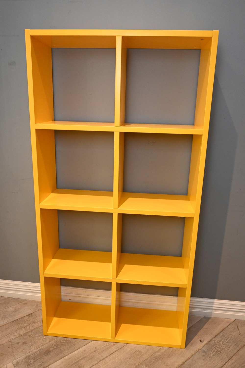 A CONTEMPORARY YELLOW SHELVING UNIT (A/F) (173H X 88W X 30D CM) (PLEASE NOTE THIS HEAVY ITEM MUST BE REMOVED BY CLIENTS OR CARRIERS AT THE CUSTOMERS EXPENSE. LEONARD JOEL STAFF CANNOT ASSIST CARRYING THIS ITEM)