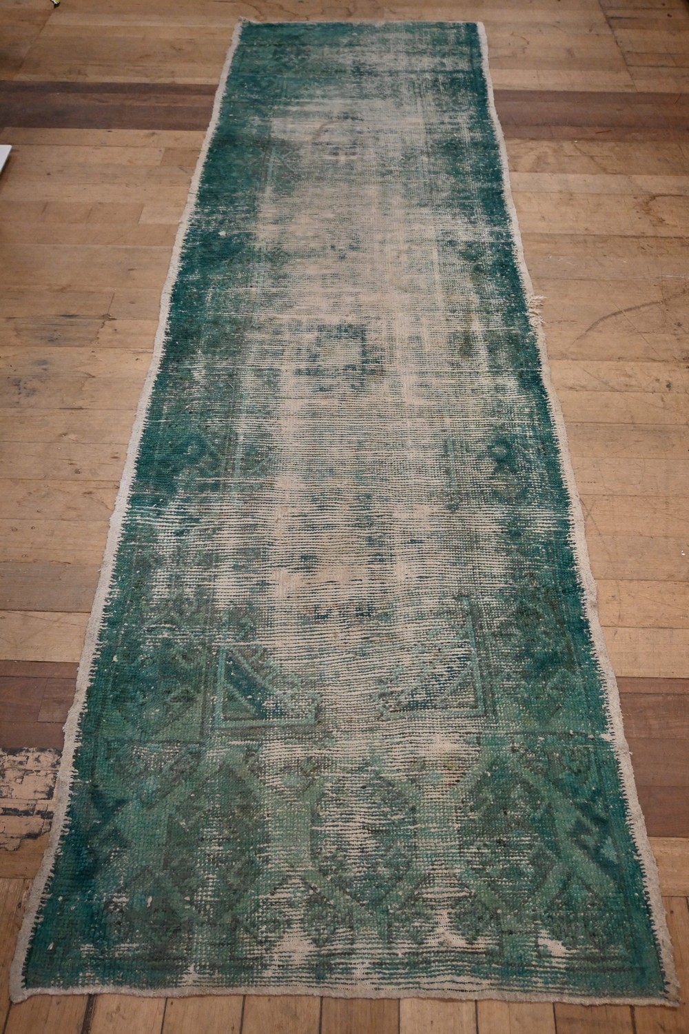 A FLATWEAVE WOOLLEN RUNNER (A/F) (333 X 93 CM) (LEONARD JOEL DELIVERY SIZE: SMALL)