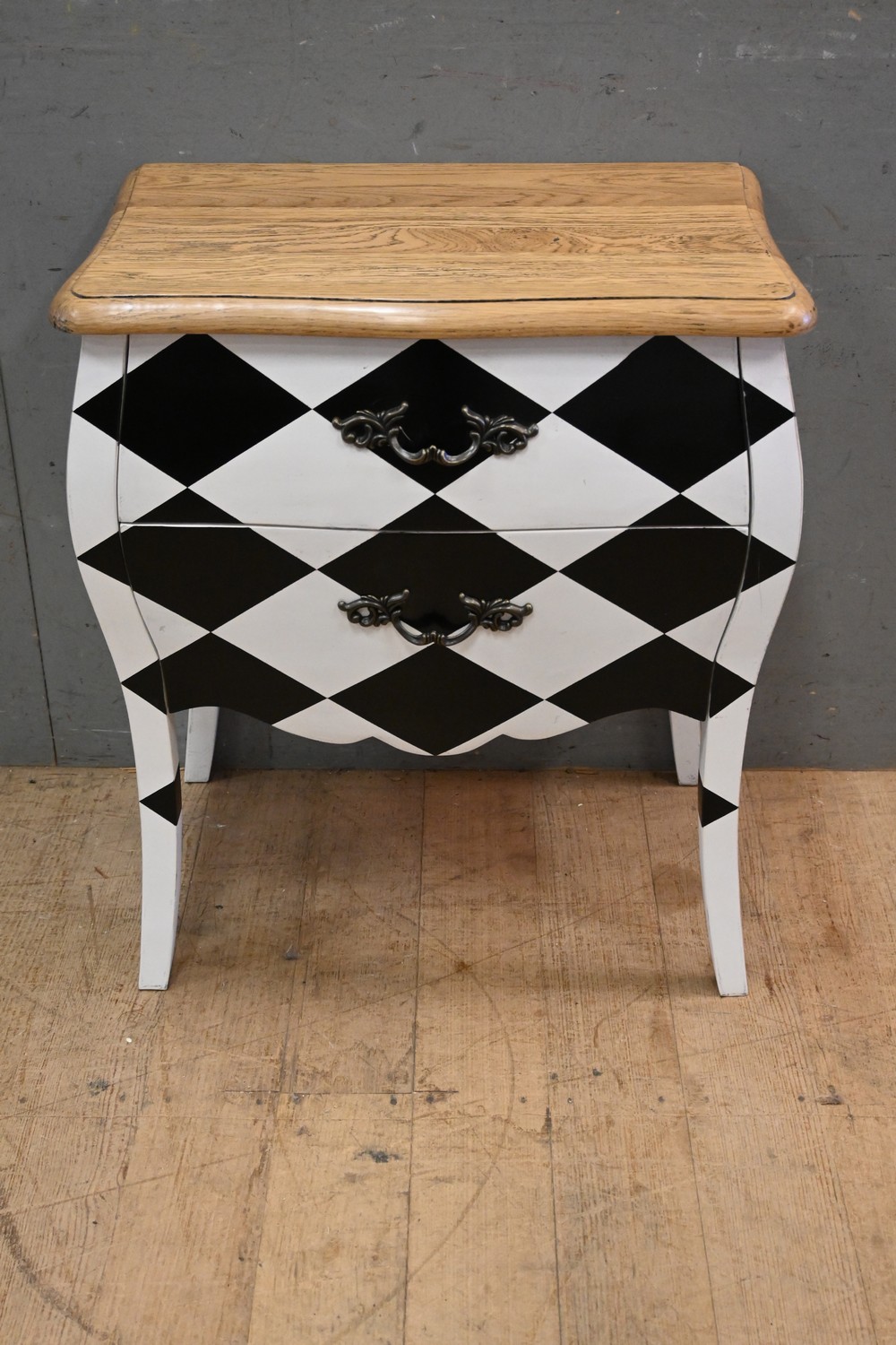 A LOUIS XV STYLE BOMBE SHAPED TWO DRAWER BEDSIDE (62H X 54W X 35D CM) (LEONARD JOEL DELIVERY SIZE: MEDIUM)