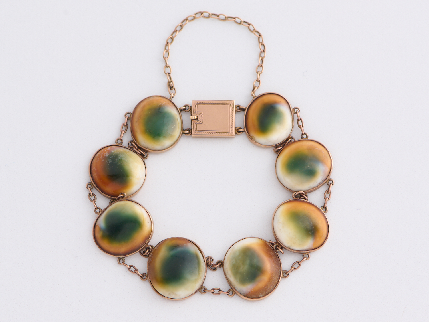 A BRACELET IN 9CT GOLD SET WITH EIGHT OPERCULA, LENGTH APPROXIMATELY 200MM IN LENGTH