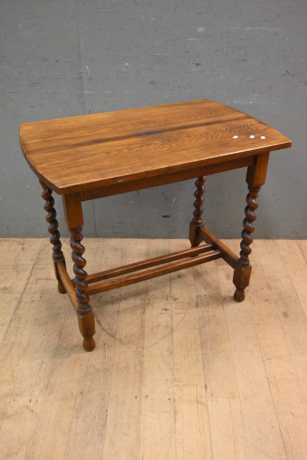 AN OAK TWO TIER HALL TABLE WITH BARLEY TWIST DETAILING (73H X 84W X 54D CM) (A/F) (LEONARD JOEL DELIVERY SIZE: LARGE)