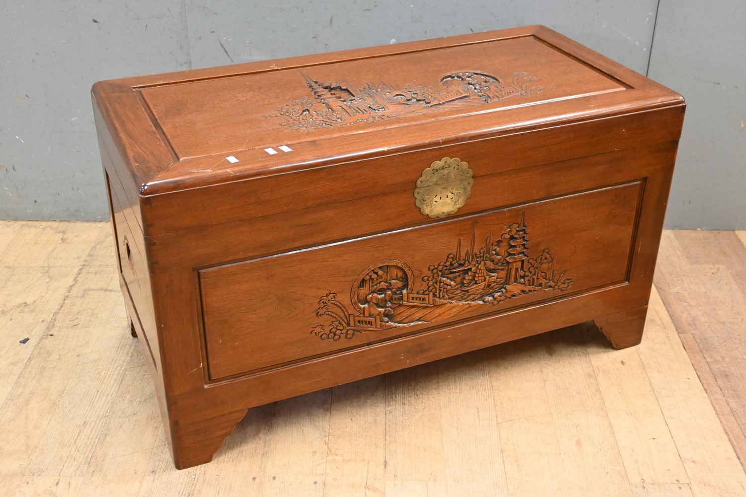A CHINESE CAMPHOR WOOD FLIP TOP TRUNK (57H X 102W X 51D CM) (LEONARD JOEL DELIVERY SIZE: LARGE)