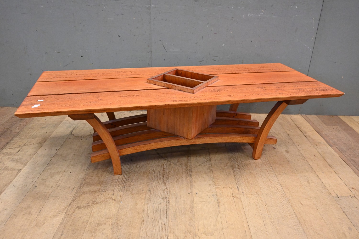 A BESPOKE TIMBER COFFEE TABLE (43H X 150W X 61D CM) (LEONARD JOEL DELIVERY SIZE: X-LARGE)