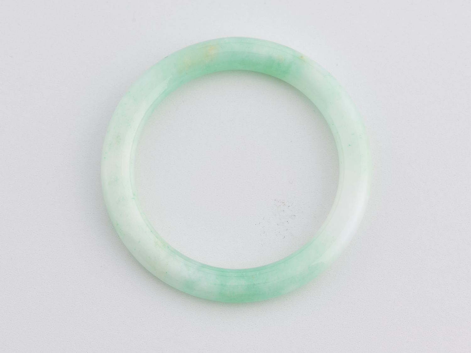 A JADE BANGLE, INNER DIAMETER APPROXIMATELY 50MM, APPROXIMATE WEIGHT 36.8GMS