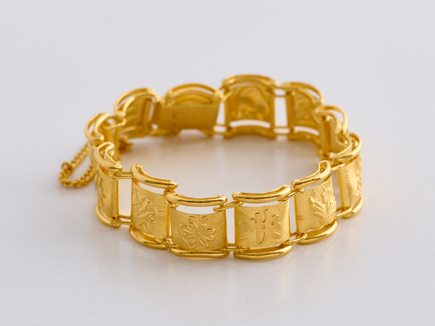 AN ORIENTAL BRACELET IN 24CT GOLD, WITH SAFETY CHAIN, 37.15GMS