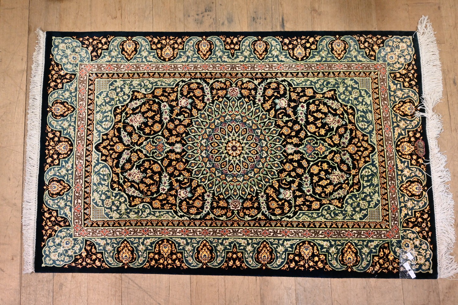 A PERSIAN SILK RUG (A/F) (135 X 79 CM) (LEONARD JOEL DELIVERY SIZE: SMALL)