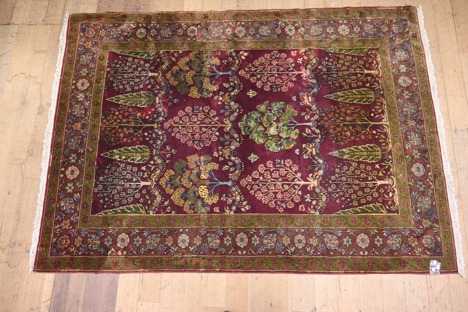 A VINTAGE INDIAN RUG (A/F) (218 X 152 CM) (LEONARD JOEL DELIVERY SIZE: SMALL)