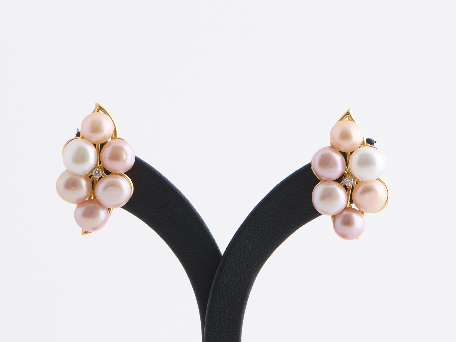 A PAIR OF FRESHWATER PEARL AND DIAMOND SET EARRINGS IN 18CT GOLD, APPROXIMATE SIZE 26 X 15MM, APPROXIMATE WEIGHT 9.59GMS