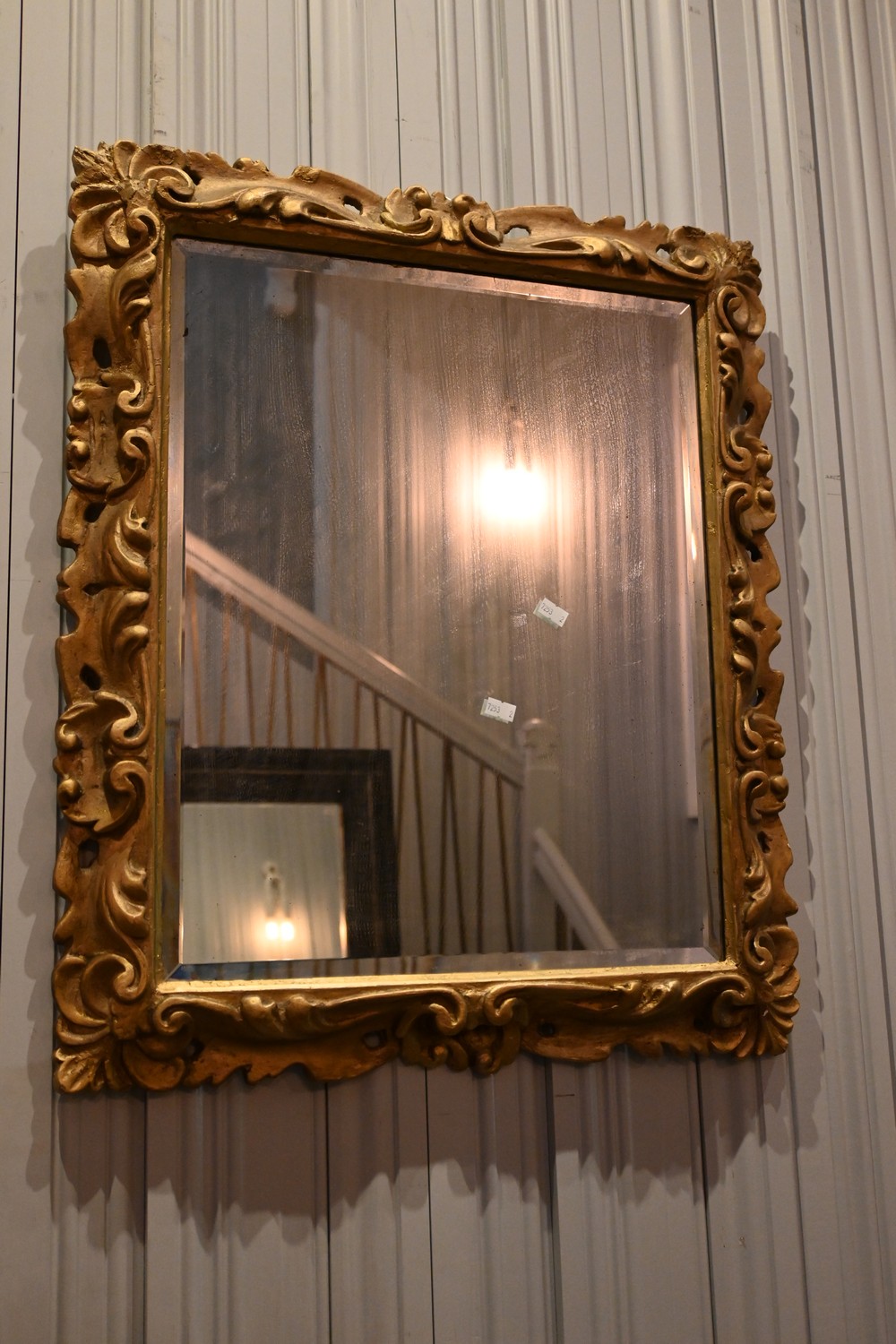 AN ANTIQUE DECORATIVE GILT MIRROR (A/F) (64H X 44W CM) (LEONARD JOEL DELIVERY SIZE: MEDIUM)