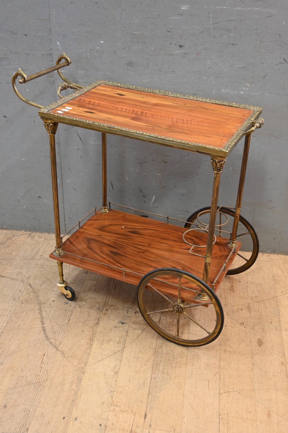 A FRENCH STYLE DRINKS TROLLEY WITH BRASS DETAILING (84H X 81W X 44D CM) (LEONARD JOEL DELIVERY SIZE: LARGE)
