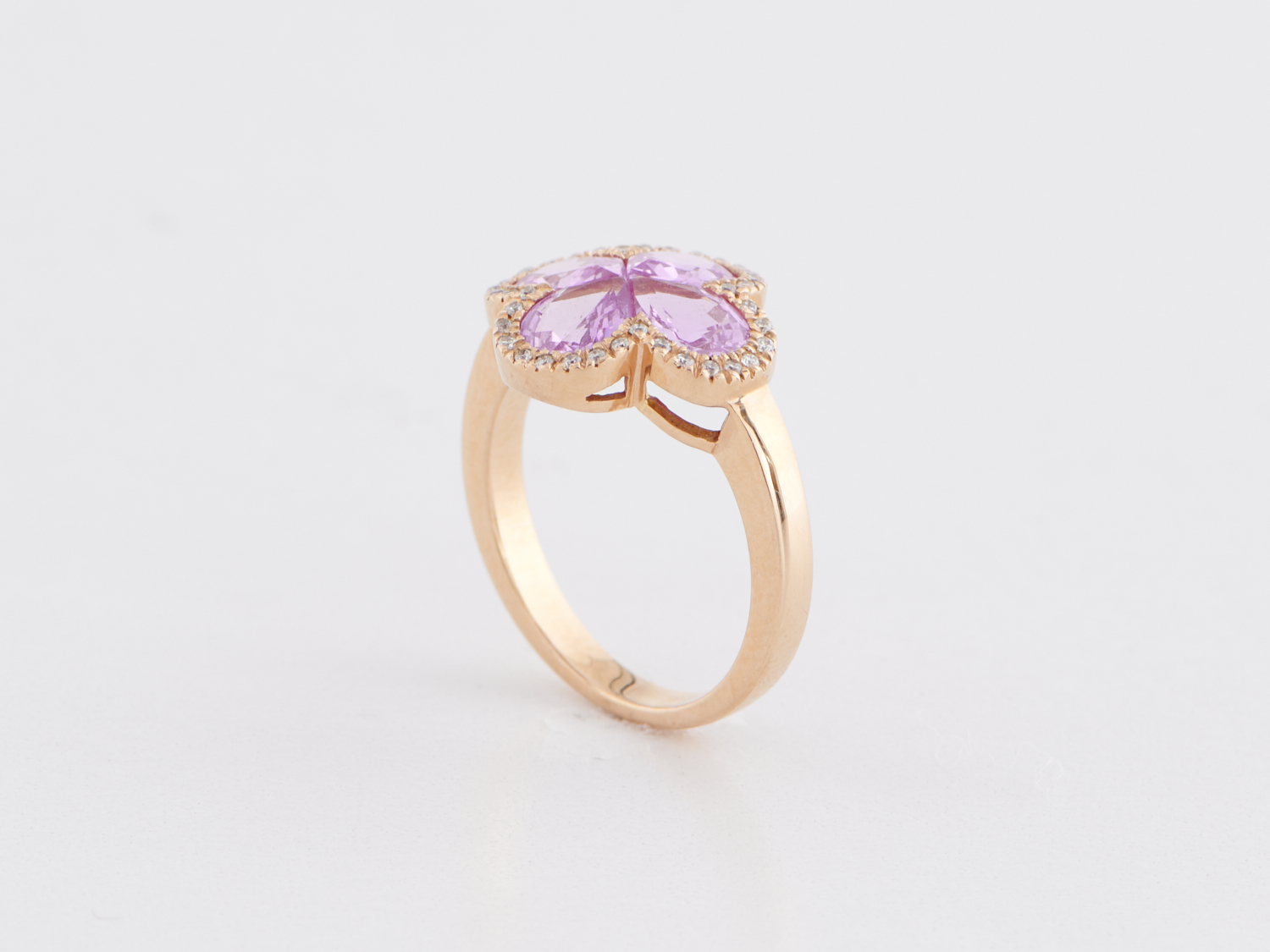 A PINK SAPPHIRE AND DIAMOND CLUSTER RING IN 18CT ROSE GOLD, APPROXIAMTE RING SIZE L, APPROXIAMTE WEIGHT 5.26MGMS