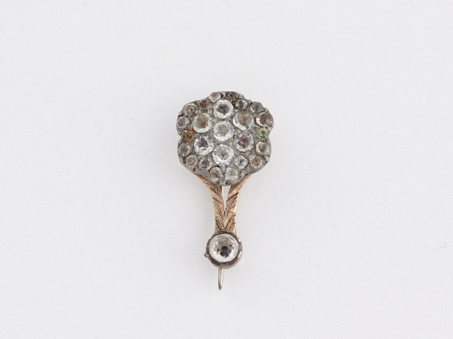 AN ANTIQUE PASTE SET HALLEY'S COMET BROOCH IN TIN AND 9CT GOLD, LENGTH 25MM, WEIGHT 3.91GMS