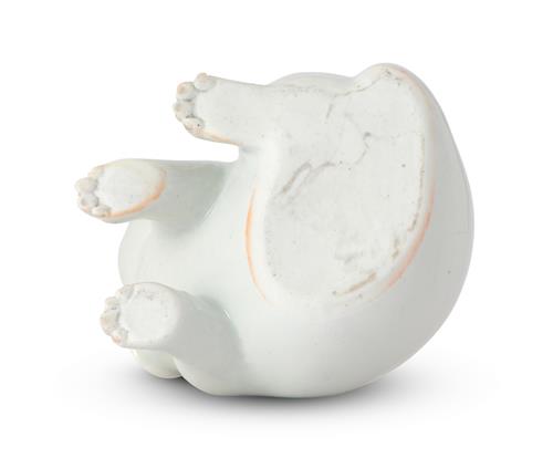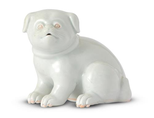 Sculpted from fine Hirado clay as a seated Akita pup with a ribbon tied in a bow around the neck, a hole pierced to the back of the neck and the mouth for use as a water dropper.