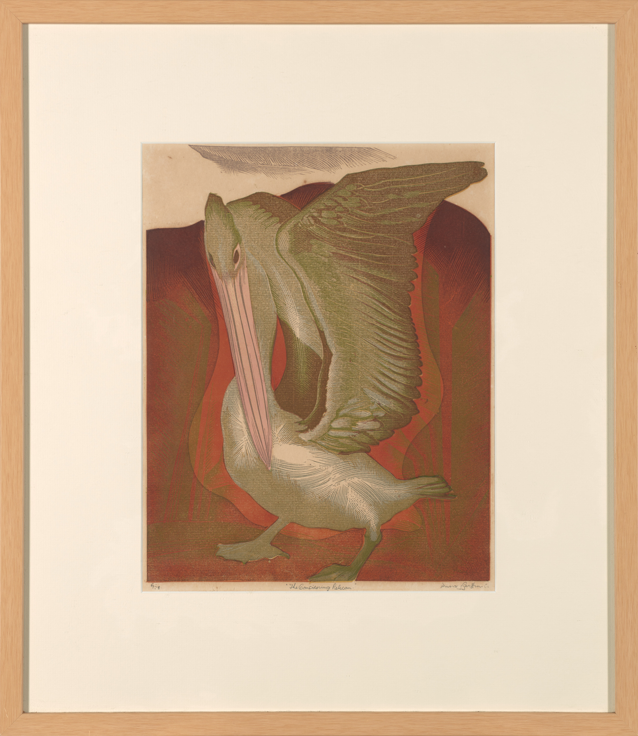 signed, titled and dated below image: 6/28 'The Considering Pelican' Murray Griffin 50