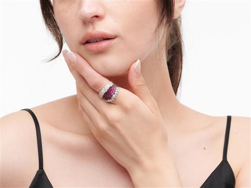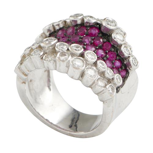 18CT WHITE GOLD, RUBY AND DIAMOND RING