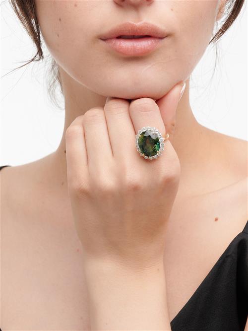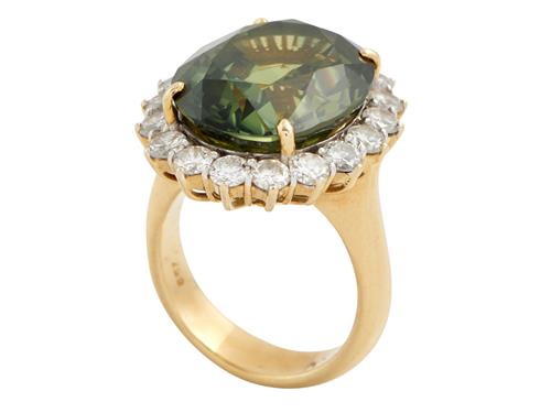 18CT GOLD, GREEN SAPPHIRE AND DIAMOND RING